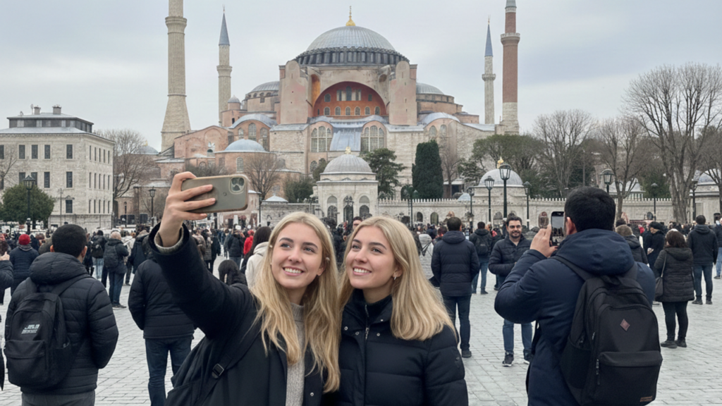İstanbul’un bu eşsiz güzelliğini kendi kareleriyle ölümsüzleştirenler, şehrin her daim sunduğu sıcak karşılamaya eşlik ediyor. Etraftaki diğer ziyaretçiler de Ayasofya’nın